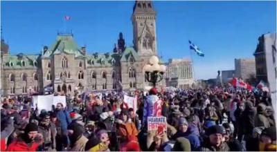 Los manifestantes contra la vacunación obligatoria a los camioneros que cruzan la frontera entre Estados Unidos y Canadá han paralizado este domingo la capital canadiense por segundo día consecutivo.