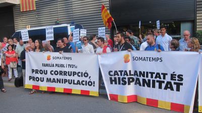 Convocados por la plataforma 'Somatemps', que está en contra del proceso independentista, los asistentes han combinado las consignas y las pancartas en contra de la corrupción con otras críticas a una eventual secesión de Cataluña.