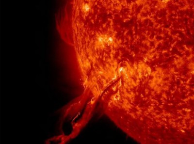 El filamento despidió una nube de partículas, pero no hacia la Tierra. Las imágenes fueron tomadas en una longitud de onda de la luz UV extrema por el Observatorio de Dinámica Solar (SDO) de la NASA.