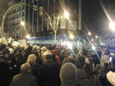 Antes de las siete y media, medio millar de personas se encontraba dentro del cordón policial en torno a Génova 13, iniciando su protesta con grito de "ladrones" y "la voz del pueblo no es ilegal". Muchos de los que se manifestaban portaban carteles como afectados por las preferentes de diferentes bancos, entre ellos Bankia.