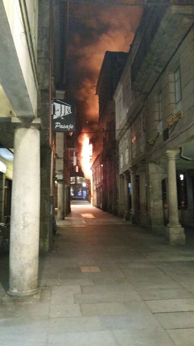 Un incendio arrasa un edificio en el casco antiguo de Pontevedra
