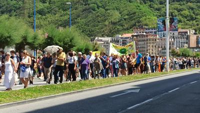 Los manifestantes, que en su gran mayoría no llevaban mascarilla y que en muchos casos no mantenían la distancia social, sobre todo en las calles más estrechas por el centro de la ciudad, han recorrido la capital guipuzcoana pasando por el paseo de la Zurriola, el Boulevard, la calle Elkano y la avenida de la Libertad.