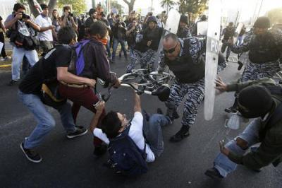 Hasta ocho personas han resultado heridas, cuatro de ellas policías con pronóstico grave, tras los fuertes enfrentamientos entre los manifestantes y las fuerzas de seguridad mexicanas.