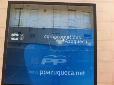La sede del Partido Popular de Azuqueca de Henares ha amanecido esta mañana con la luna reventada