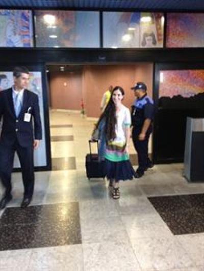 "Mi nombre no ha sonado en los altavoces, no me han llevado a un cuarto para desvestirme o leerme la cartilla. Todo está saliendo bien (...). Logré traspasar la barrera del punto de control migratorio.", ha narrado ella. Una vez en el avión, ha asegurado que la acogida ha sido "muy cálida". "Hay abrazos, fotos en conjunto... Ya siento el olor de la libertad", ha indicado. "He encontrado una viajera peruana muy solidaria que ahora mismo me da animo", ha añadido.