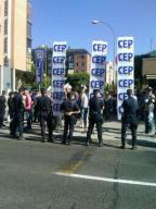 Cerca de un centenar de policías nacionales adscritos a los sindicatos de la Confederación Española de Policía (CEP) y la Unión Federal de la Policía (UGP), entre otros, se han concentrado este martes frente a las puertas del centro policial de Canillas para mostrar su malestar contra los recortes a los funcionarios, con motivo de la presencia del director general de la Policía, Ignacio Cosidó, durante la presentación de los nuevos agentes destinados en Madrid.