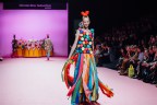 La diseñadora Agatha Ruiz de la Prada ha incorporado al decorado para su desfile en la Mercedes Benz-Fashion Week Madrid varios iglúes de plástico como los que se emplean para reciclar vidrio, con un diseño similar al de los vestidos de la diseñadora madrileña.