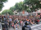 Los manifestantes han montado barricadas con contenedores para evitar que las furgonetas policiales vuelvan a ocupar sus puestos.
