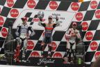 El piloto Dani Pedrosa (Honda) se ha proclamado vencedor de la prueba de MotoGP del Gran Premio de Japón, que se ha celebrado este domingo en el circuito de Motegi, por delante de Jorge Lorenzo (Yamaha) y Álvaro Bautista (Honda) en un día con el primer podio plenamente español de la historia en la categoría que permite al catalán recortarle punto al líder del mundial y soñar con la remontada.