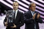 El centrocampista manchego del FC Barcelona e internacional español Andrés Iniesta ha conseguido este jueves el premio al "Mejor Jugador" de la UEFA de la pasada temporada, la 2011/12, al imponerse en la votación celebrada durante el sorteo de la fase de grupos de la Liga de Campeones a su compañero Leo Messi y al jugador del Real Madrid Cristiano Ronaldo.