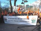 Centenares de agricultores y ganaderos de toda España se han manifestado este jueves ante la sede de la UE en Madrid contra "el desmantelamiento del mundo rural a todos los niveles" y el recorte del 20% a la agricultura en el presupuesto europeo para el periodo 2014-2020.