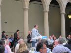 Rajoy trata con frialdad a Aznar, al que cita únicamente como "presidente de honor" del PP