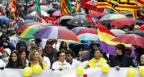 Unas 5.000 personas según la Guardia Urbana se han manifestado este domingo en Barcelona en contra de los recortes y las privatizaciones en el sector público, especialmente en la sanidad y la educación.