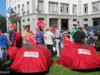 Un grupo de mineros, convocados por la Federación de Industria de Comisiones Obreras de Asturias, se ha concentrado este lunes ante la Delegación de Gobierno de Oviedo y ha iniciado una acampada en la Plaza de España, para exigir al Ejecutivo central que no ejecute los recortes anunciados al sector del carbón.