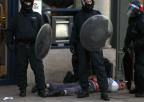Los participantes en la protesta comenzaron a atacar a los policías sobre las 16.20 horas (17.20 hora peninsular española). Los grupos de jóvenes han golpeado varios coches policiales con estacas de madera y barras de hierro. En respuesta a los disturbios la Policía ha desplegado ocho furgones con unos 200 agentes.