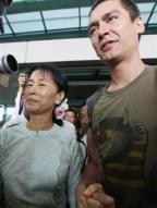 La Premio Nobel de la Paz, Aung San Suu Kyi, se ha reencontrado con el menor de sus hijos, Kim Aris, quien ha llegado este martes al aeropuerto de Rangún para visitar a su madre, recientemente liberada por la Junta militar que gobierna Birmania tras 20 años de arresto, a la que no veía desde hace una década.