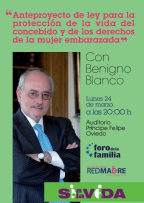 El presidente del Foro Español de la Familia dará hoy una conferencia sobre el Anteproyecto de la nueva Ley del Aborto, dentro de los actos programdos entorno al dia de la vida, el 25 de marzo, que se celebra la Solemnidad de la Encarnación del Señor.