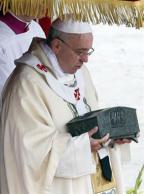 El Papa Francisco ha sostenido el relicario del Apóstol Pedro durante la oración del Credo en la Misa de clausura del Año de la Fe que se celebra este domingo en la Plaza de San Pedro.