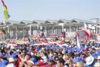 El ambiente en la explanada del Fórum ha sido muy festivo y miles de jóvenes católicos han entrado al recinto cantando canciones y mostrado su alegría por asistir a la eucaristía.