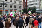 A las doce del mediodía se reunieron un numeroso grupo de personas de todas las edades en la Plaza de la Escandalera de Oviedo en defensa da la vida humana.