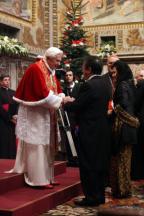 Esta mañana, en la Sala Regia del Palacio Apostólico Vaticano, Benedicto XVI pronunció su discurso anual a los miembros del Cuerpo Diplomático acreditado ante la Santa Sede. El Papa recibió las felicitaciones de todos los embajadores, a través del decano del Cuerpo, el Embajador Alejandro Emilio Valladares Lanza, de Honduras.